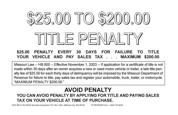 their vehicle to avoid the $25.00 per month title penalty. Sold in Singles.